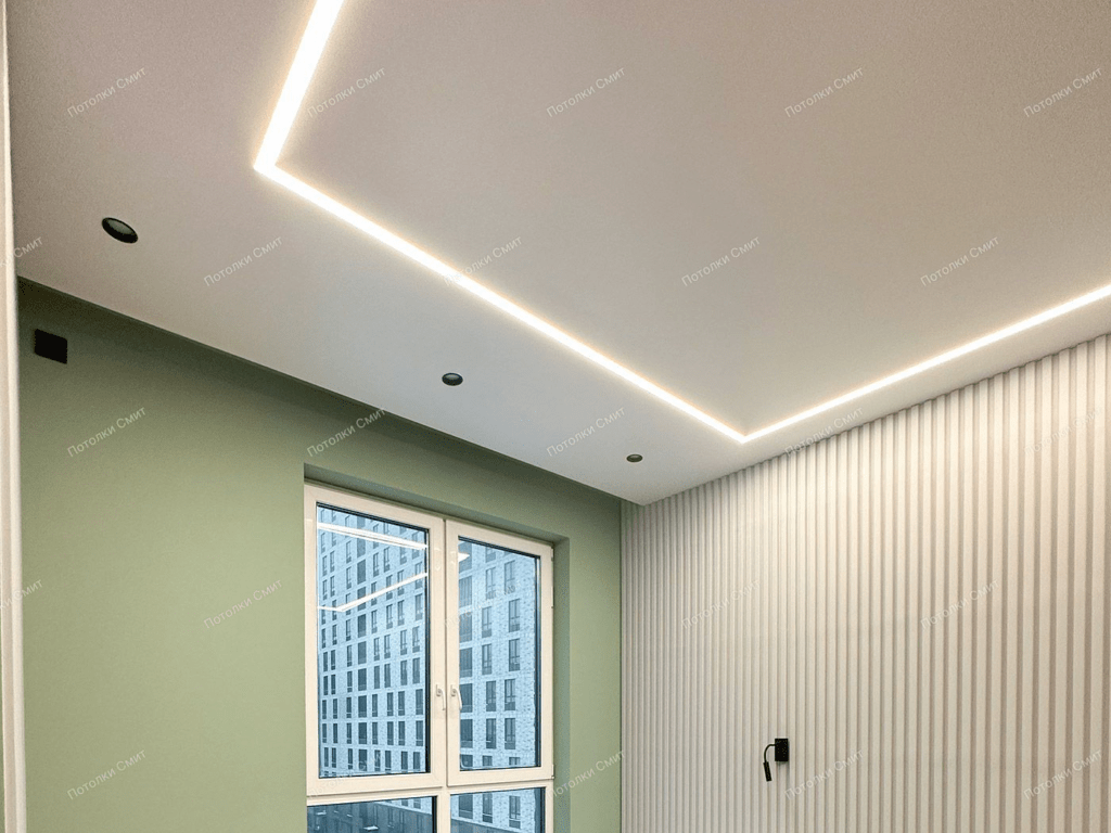Натяжные потолки позволяют скрыть различные коммуникации и неровности базового потолка, при этом они забирают минимум высоты помещения – всего 3-5 сантиметров. С их помощью можно создавать многоуровневые конструкции, устанавливать различные типы освещения, включая точечные светильники и светодиодные ленты.