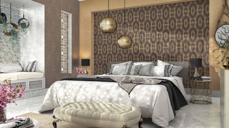 Обои для спальни с блеском