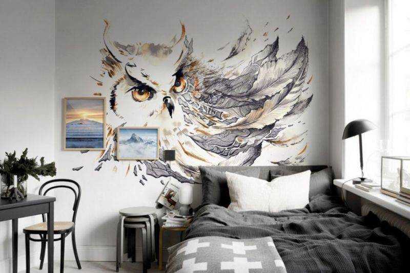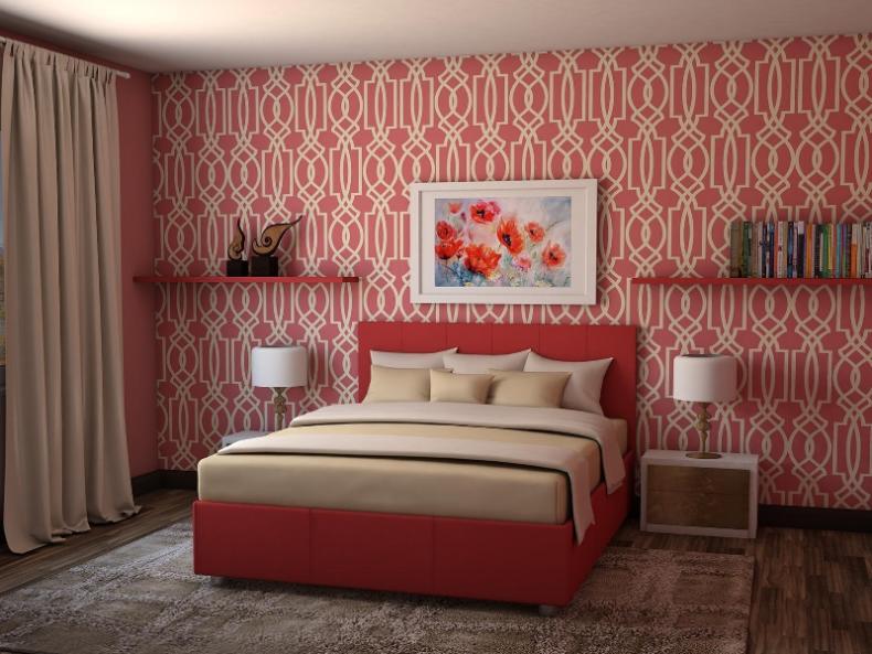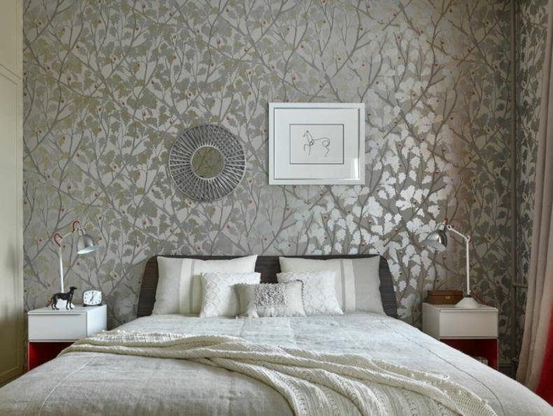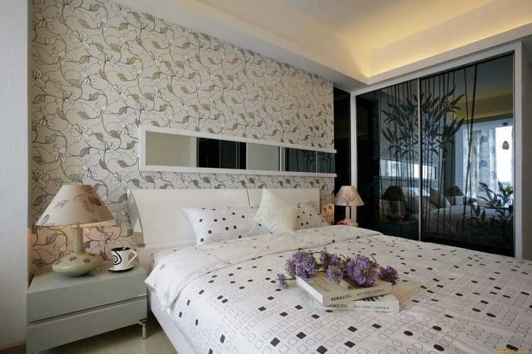 Для маленьких узких спален действуют те же приемы, только работают они от обратного. Узоры и изображения должны располагаться не вертикально, а по горизонтали, тем самым расширяя стену.