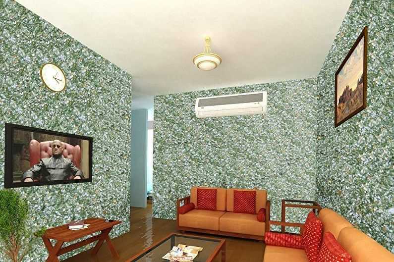 Так называемые «жидкие» обои – это последний слой штукатурки, который хорошо выровняли или наоборот, прошлись по нему фигурным валиком.