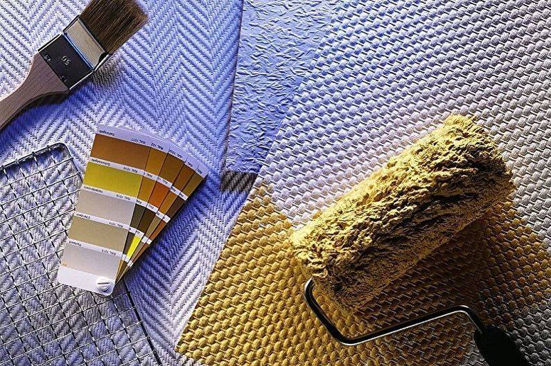 Окрашивать можно лишь обои, обработанные по специальной технологии, они наделены водостойкими качествами и отлично удерживают нанесенную краску. Для них предназначена специальная краска, которая очень быстро высыхает и ровно ложится на поверхность.