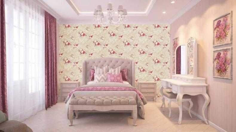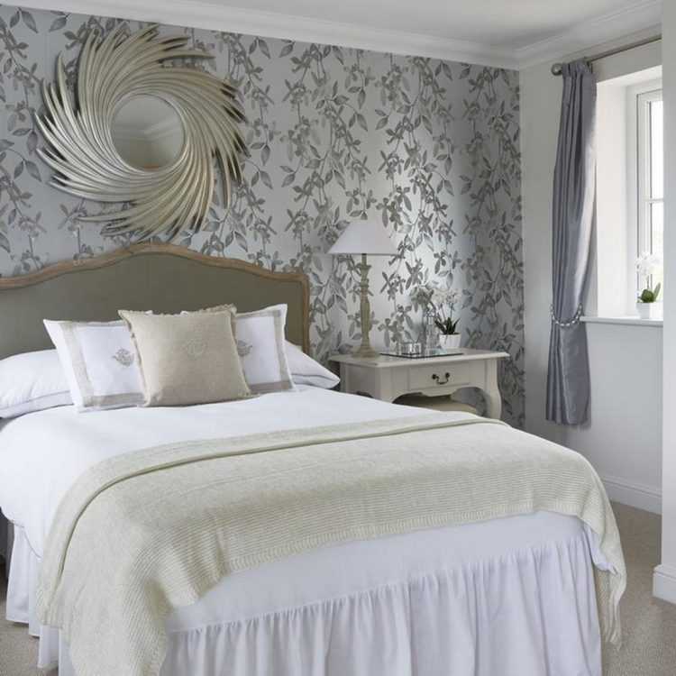 Существует несколько дизайнерских приёмов визуального изменения объёмов помещения. Светлые холодные тона зрительно расширяют пространство, отдаляя стены, поэтому обои для маленькой спальни окрашивают в белый, светло-голубой, жемчужный, серый, бирюзовый цвета. Мелкие узоры на стенах придают небольшой комнате уют и лёгкость.
