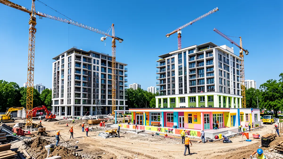 В остальных секциях корпусов идут работы по возведению монолитного каркаса на высote 6-10 этажей. Параллельно ведется кладка внутренних стен и перегородок, а также прокладка инженерных сетей в подвальных помещениях. На этажах монтируются системы вентиляции, обеспечивающие комфорт и безопасность будущих жителей.