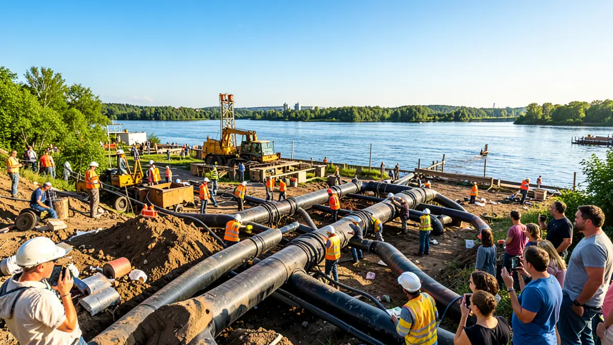 По информации подрядчиков, на данный момент завершены основные этапы бурения, и ведётся установка футляров под землёй. Трубопровод проходит от будущего культурно-исторического кластера «Речной» до Старого Волжского моста. После того как все работы будут окончены, планируется установка колодцев и благоустройство прилегающей территории.