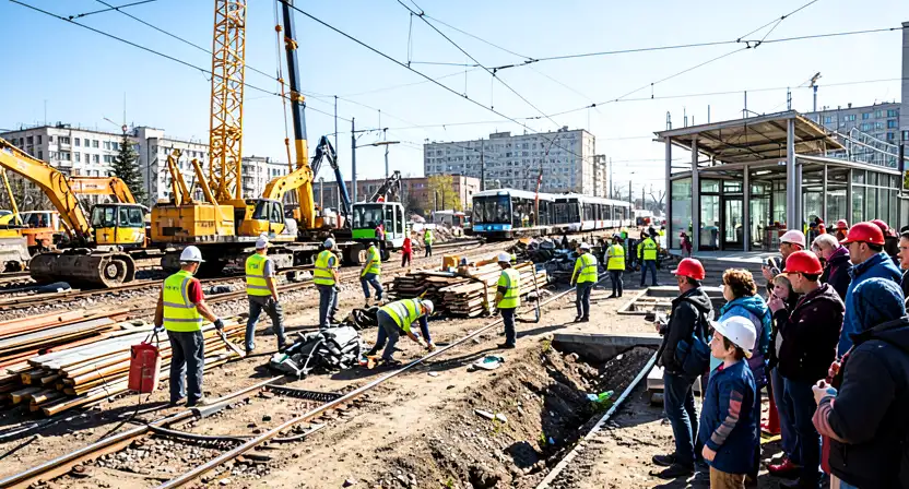 С сегодняшнего вечера специалисты начнут работы по переключению контактных линий, что временно изменит схему трамвайного движения. В настоящее время на эстакаде осуществляется монтаж контактных сетей. После запуска нового движения планируется демонтаж старых путей на площади Труда, что повысит пропускную способность транспортной сети.