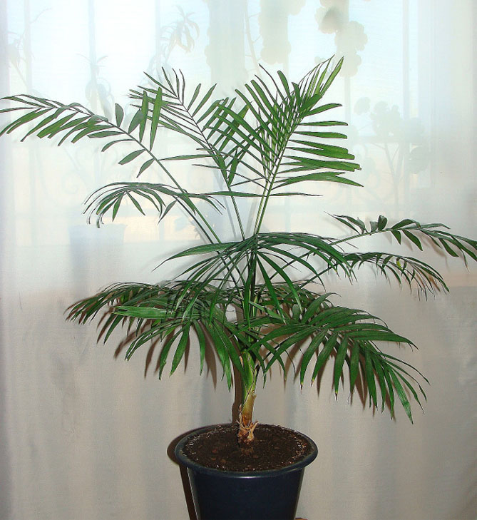 Эти пальмы можно поставить у северного, восточного и северо-западного окон или в глубине освещенной комнаты.