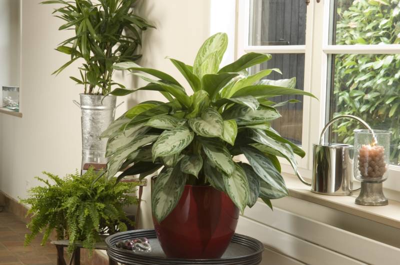 Аглаонема скромная (Aglaonema modestus) — растение, похожее на диффенбахию, но меньшего размера. Листья зеленые или с разноцветными полосами и пятнами, хорошо заметной средней жилкой.
