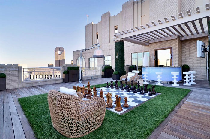 Декоративный камень в интерьере хорошо сочетается с разными отделочными материалами, превращая открытую террасу в место, где хочется проводить все время.