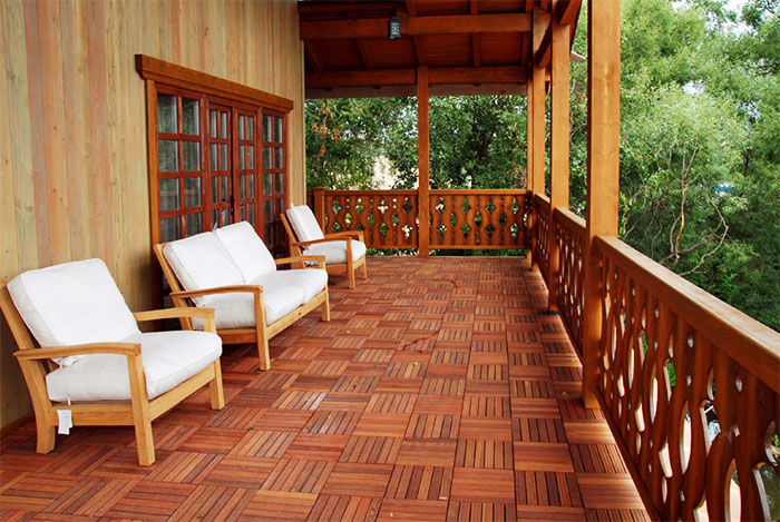 Его чаще выбирают, если основной дом — деревянный. С деревом удобно и комфортно работать. Построить небольшую площадку из бруса и досок своими руками сможет почти каждый. Достаточно иметь хотя бы минимальный опыт работы с инструментом.