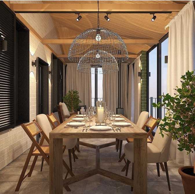 Если ваша веранда не слишком велика, это нужно учитывать в дизайне. Идеальным станет круглый стол в середине помещения.