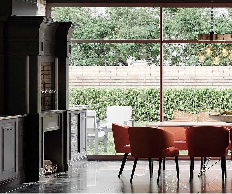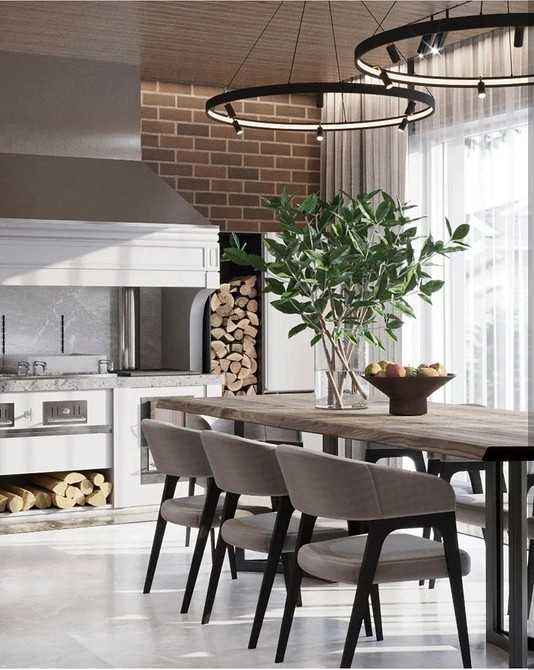 Иногда в пристройку выносят летнюю кухню. Обычно, в мини-формате. Встречаются и более неожиданные решения. Например, разместить массивную зону мангала. В этих случаях рядом, как правило, располагается столовая группа.