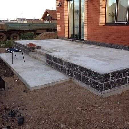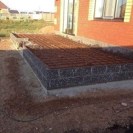 Выбор вида фундамента зависит от материалов стен веранды. Хотя любая пристройка давит на грунт меньше основного здания, и вид фундамент может быть как таким же по устройству и материалам, так и «легче» основания дома.