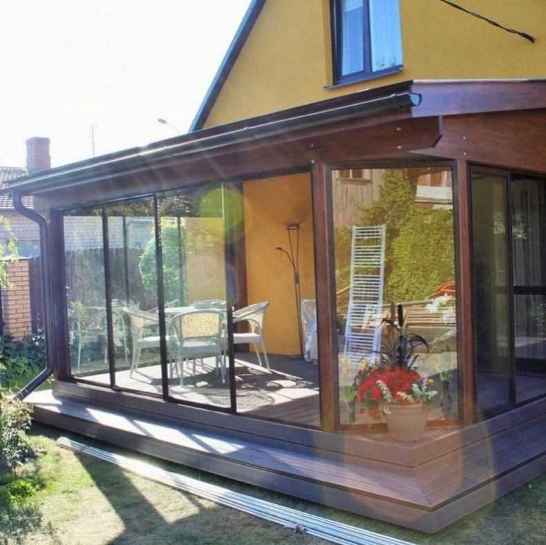 На закрытой веранде можно чувствовать себя комфортно независимо от времени года. Это не только несущая конструкция, крыша и перекрытие, но и