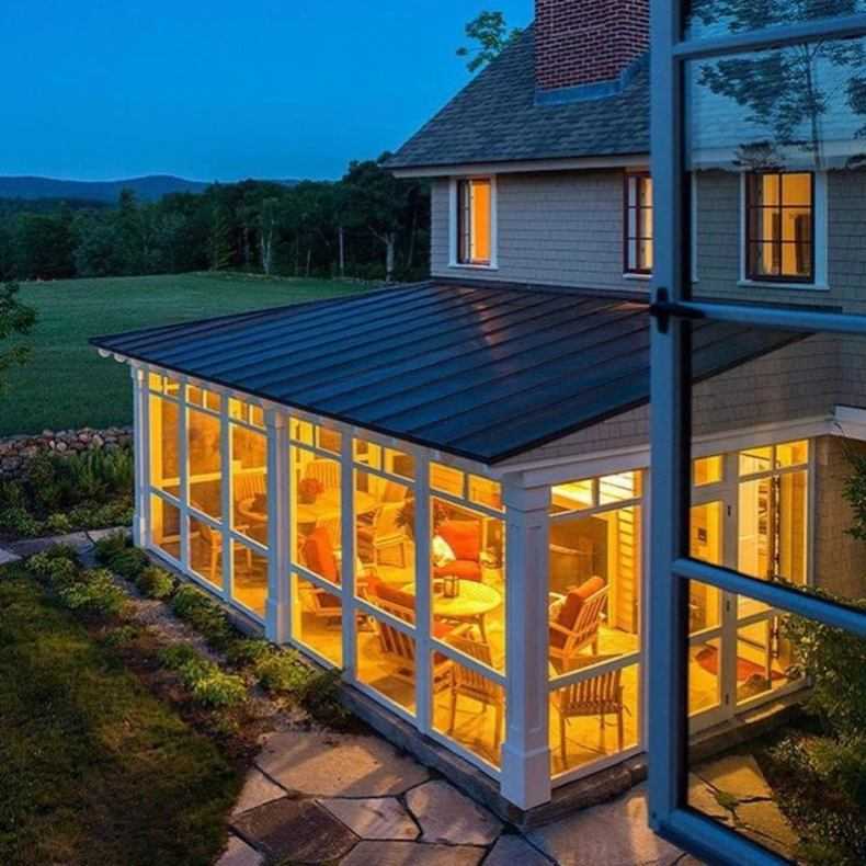 Это закрытая веранда, которая становится продолжением основного здания и дополнительной комнатой. Остекляется, оснащается камином либо другим отопительным оборудованием.
