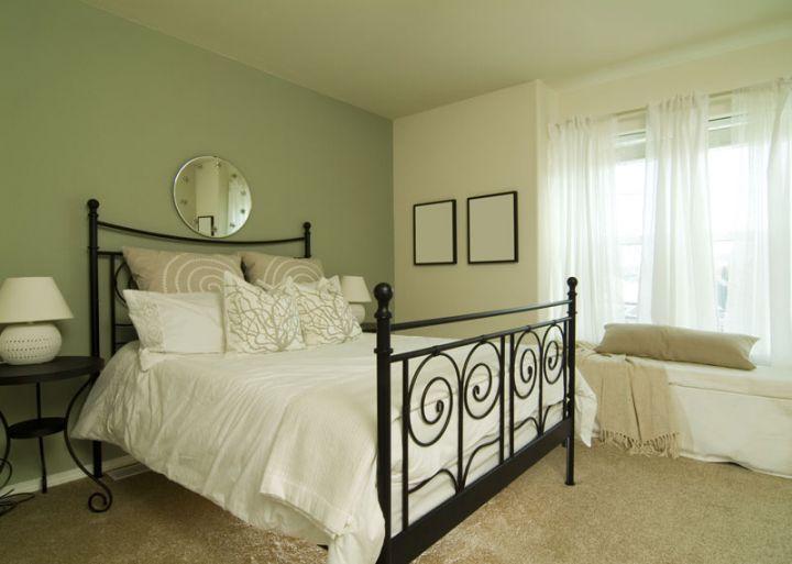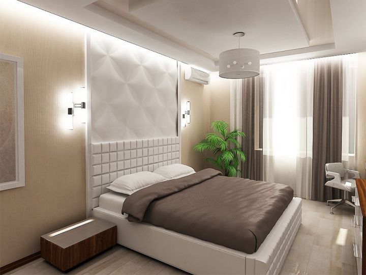 Колірне рішення краще вибрати в світлих тонах, якщо спальня маленьких розмірів, це дозволить візуально збільшити кімнату.