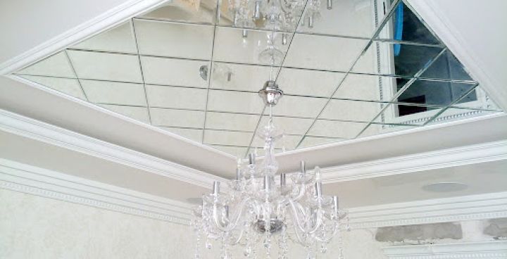 Ефект високих стель створюють глянсову поверхню натяжної стелі та дзеркальні облицювальні плити.