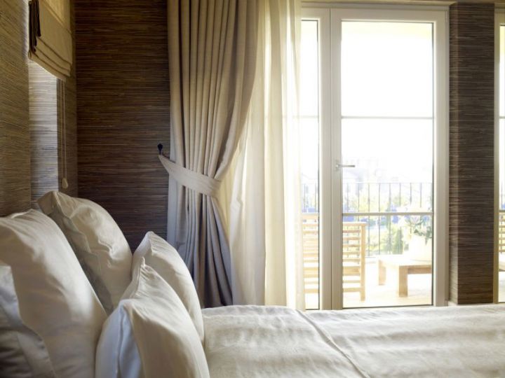 Щільні штори із дорогого текстилю стануть чудовим обрамленням для вікон у великих спальнях або з великою кількістю природного освітлення. Для маленького місця варто підібрати легкі світлі тканини.