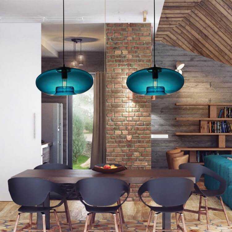 Люстри для цього стилю підійдуть із металевим каркасом. Доповнять образ плафони зі скла.