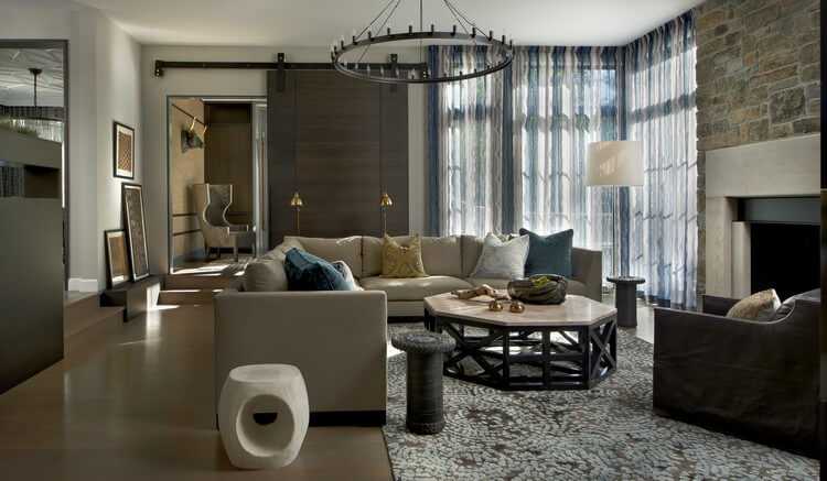 Невід’ємною частиною заміського будинку у стилі лофт є камін. Виконання може бути як у класичному вигляді, в камені та червоній цеглині, так і у витонченому металевому каміні в центрі кімнати.