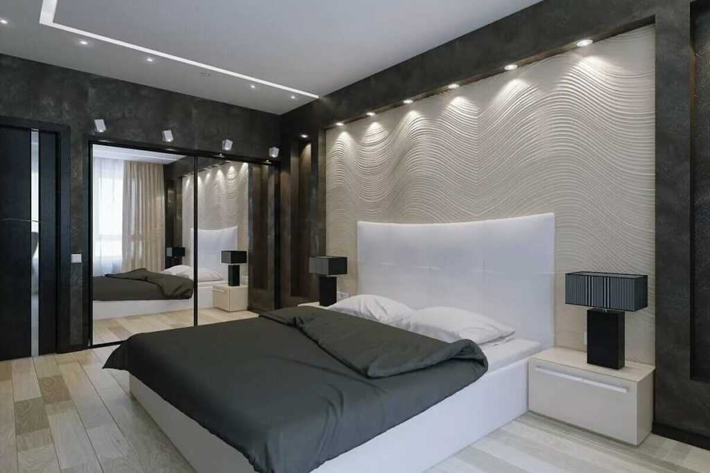 Меблі також не повинно бути багато, зупинятися на ліжку, двох тумбочках і комоді. Ліжка можна зробити “прящою” з неонової підсвіткою.