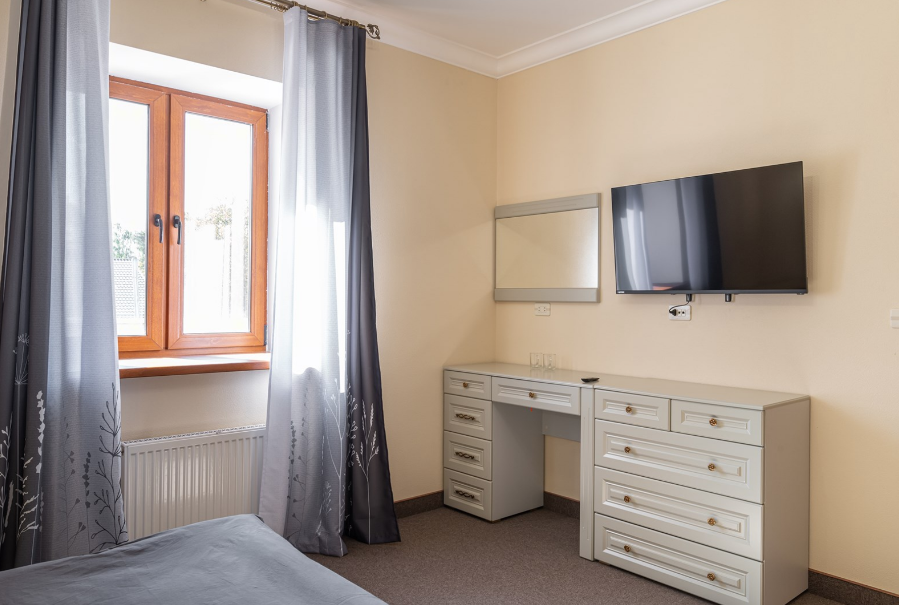 Техническое оснащение соответствует современным стандартам. Гостям доступен высокоскоростной Wi-Fi и кабельное цифровое телевидение. В комнатах установлены телевизоры с плоским экраном и функцией Smart TV, что позволяет не отрываться от любимых фильмов и передач. Для поддержания оптимального микроклимата используется система кондиционирования и отопления. Бытовой комфорт обеспечивают наличие утюга, гладильной доски, фена и электрического чайника с набором посуды.